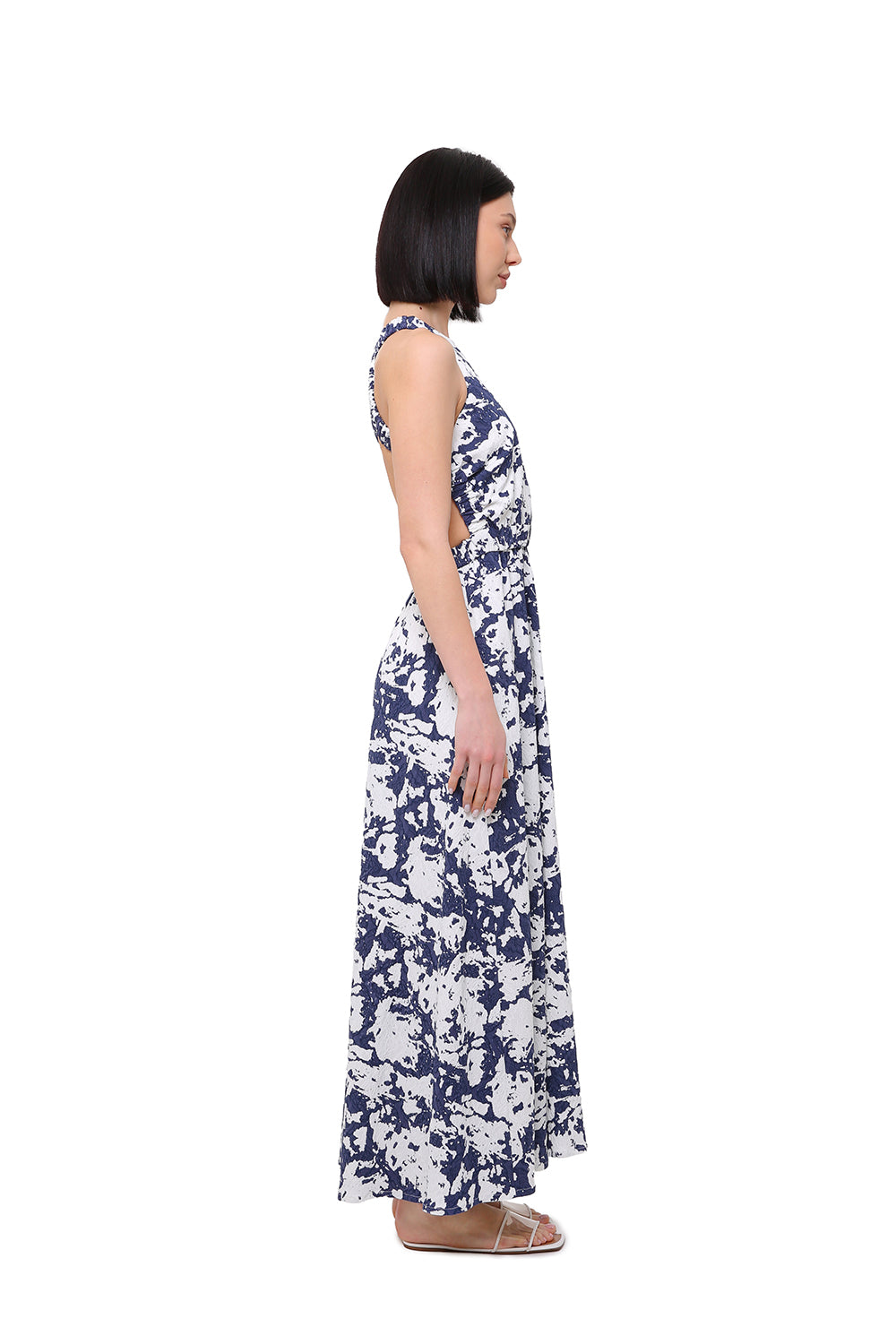 The structured yet breathable fabric ensures comfort, while the graphic print adds a bold, contemporary touch. The flowing skirt creates effortless movement, making it perfect for warm days and refined summer looks.