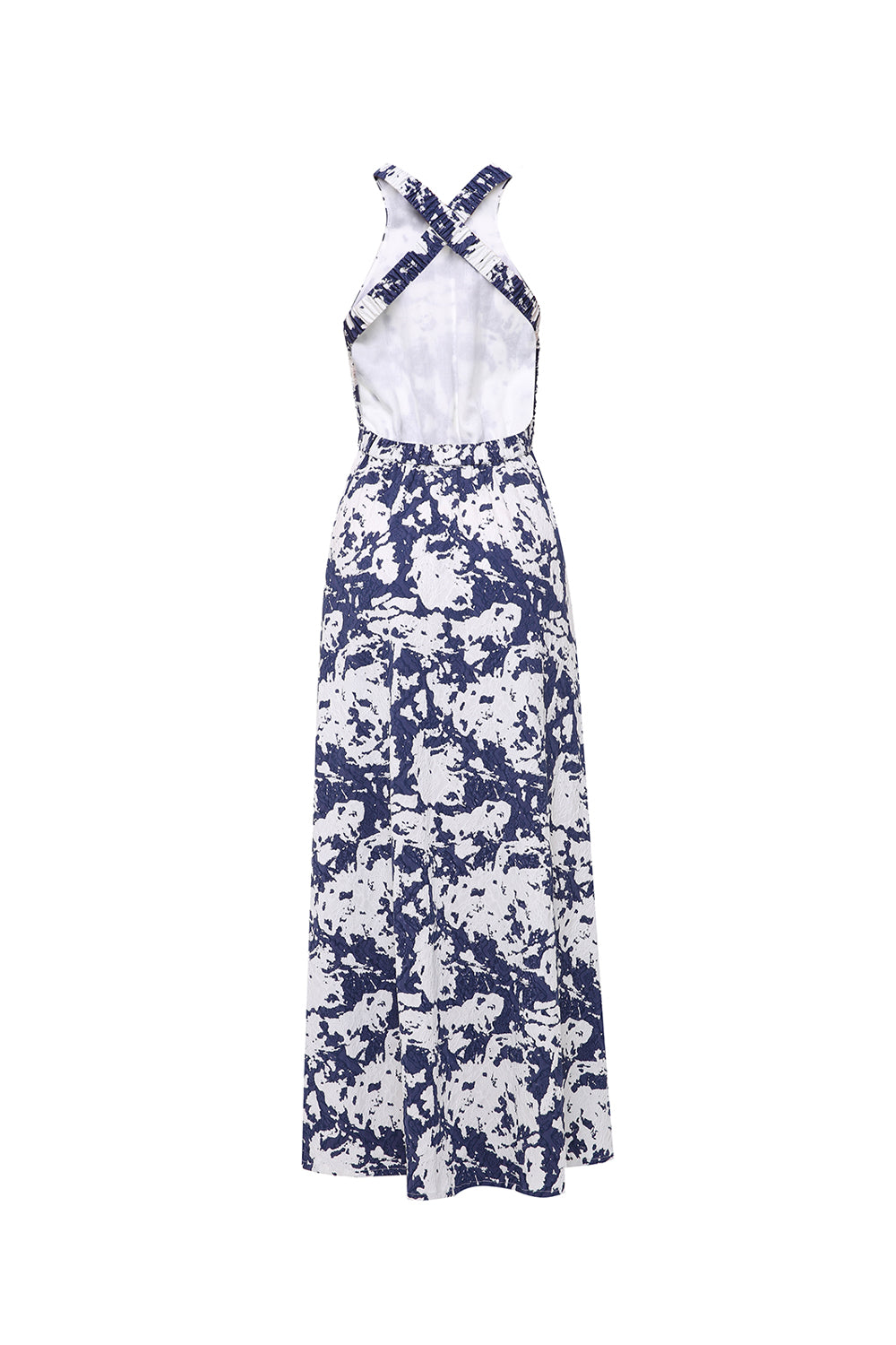 A modern midi dress crafted from stretch cotton, designed with a clean front silhouette and an open back featuring delicate cross straps.