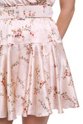 The delicate floral print and lightweight silk fabric create a graceful, flowing movement, while the flared hem adds a playful, romantic touch.