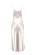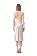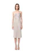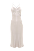 Classic slip silhouette with seamed triangle cups at the empire waist. Features a flattering deep v-neckline and sultry open-back cross strap.