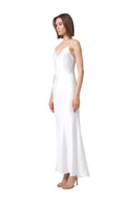 Terrin is our cute midi dress, featuring micro thin straps and a low scoop back, our Terrin dress is a perfect bias cut slip style wedding dress for all occasions, from casual laid back weddings to sleek city civil ceremonies.